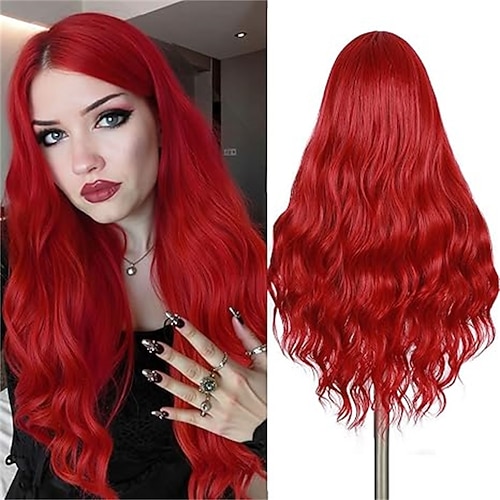 Parrucca di Carnevale Rosso Riccio Ondulato Lungo Parrucca sintetica da festival Martedì grasso Parata Capelli per costumi da cosplay per Da donna