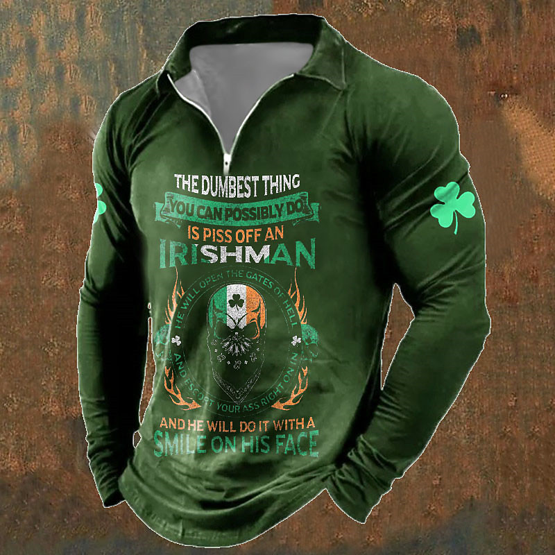 St. Patrick Men's Four Leaf Clover Saint Patrick Day Polo Polo Shirts Zip Polo Long Sleeve Polo Shirts Turndown Zip Casual Outdoor St.Patrick's Day Casual Daily Streetwear 3D Print Spring Summer