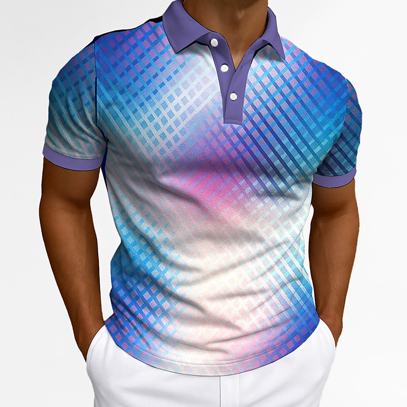 Per uomo Geometrico Polo Polo da Golf Manica Corta Magliette polo Bavero Casual Athleisure Stampa 3D Bottoni Estate Blu Verde