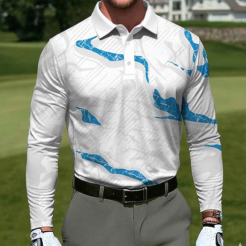 Per uomo Golf Polo Polo Sportivi Manica Lunga Magliette polo Bavero Casual All'aperto Athleisure Abbigliamento quotidiano Stampa 3D Bottoni Primavera Autunno Blu azzurro cielo Rosso