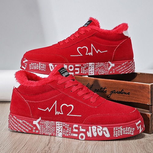 Rote, mit Fell gefütterte Herren-Sneaker – trendige Freizeitschuhe für Weihnachten und die Feiertage