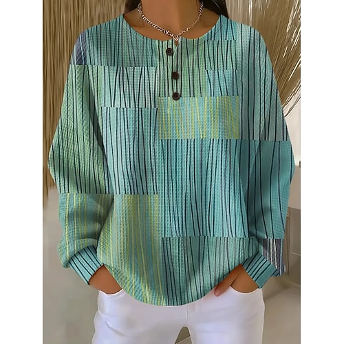 Per donna Felpa Pullover Grafico Geometrico Moda Casual Stampa Manica Lunga Girocollo Top Regolari Casuale Casa Lavoro Bottoni Giallo Rosa Verde Primavera Autunno