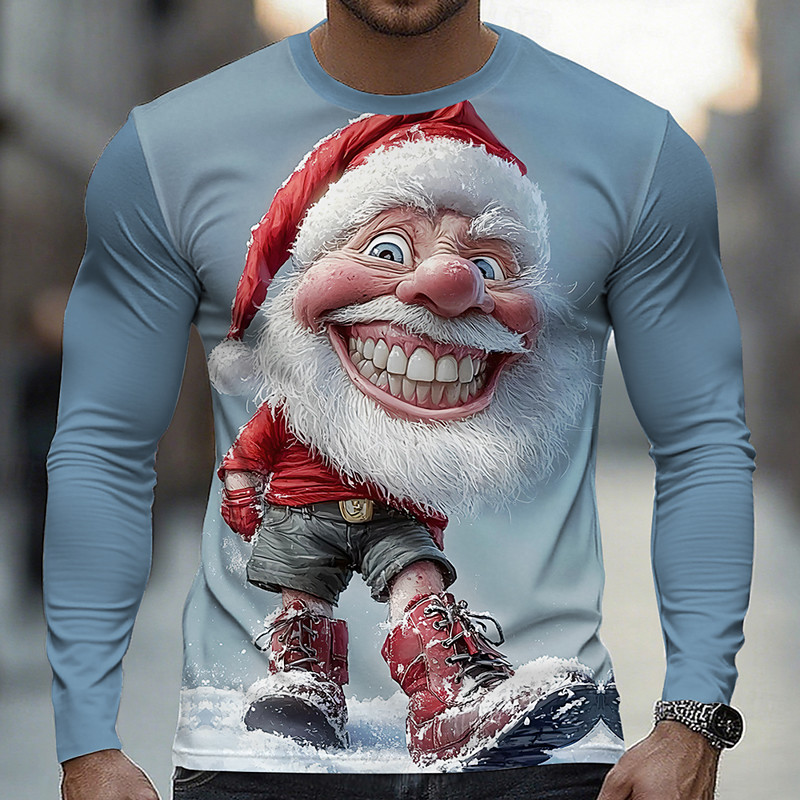 Christmas Men's Santa Claus Funny T Shirt Long Sleeve T shirt 3D Print Crew Neck Shirt Fashion Basic 3D Street Casual Daily Blue 2# Blue Summer Spring Clothing Apparel S M L XL XXL XXXL