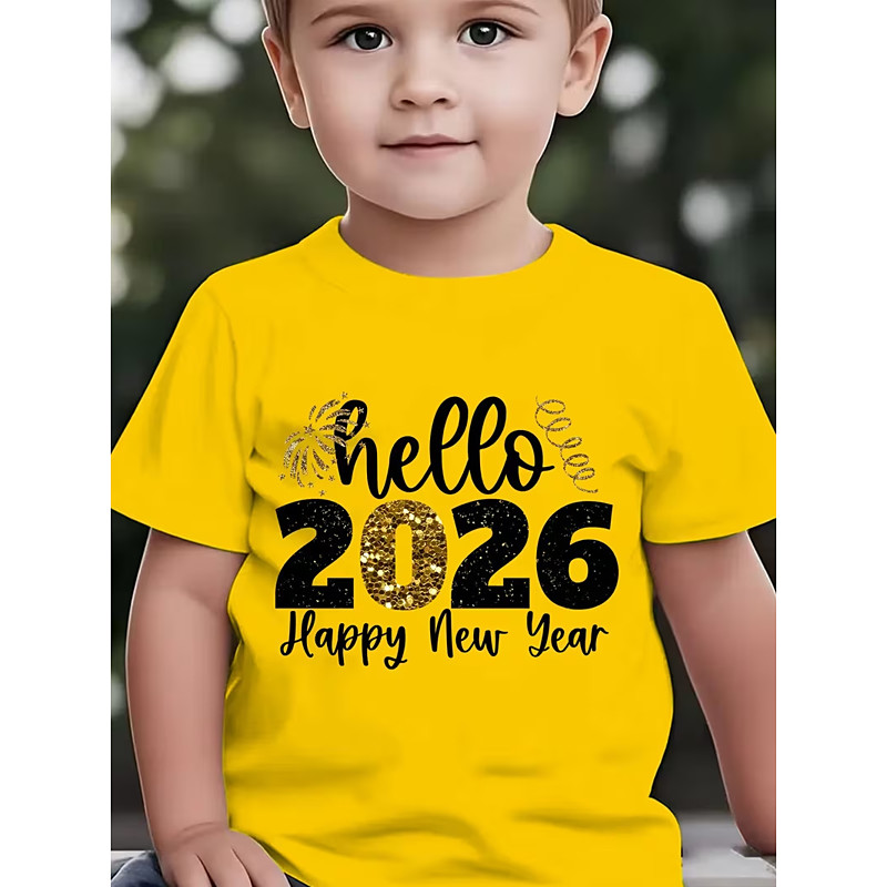 Boys' 2026 New Year'S Party 3D Graphic Letter T shirt Tee Short Sleeve 3D Print Summer Spring Sports Fashion Streetwear Kids 4-12 Years Crew Neck Outdoor Casual Daily Regular Fit