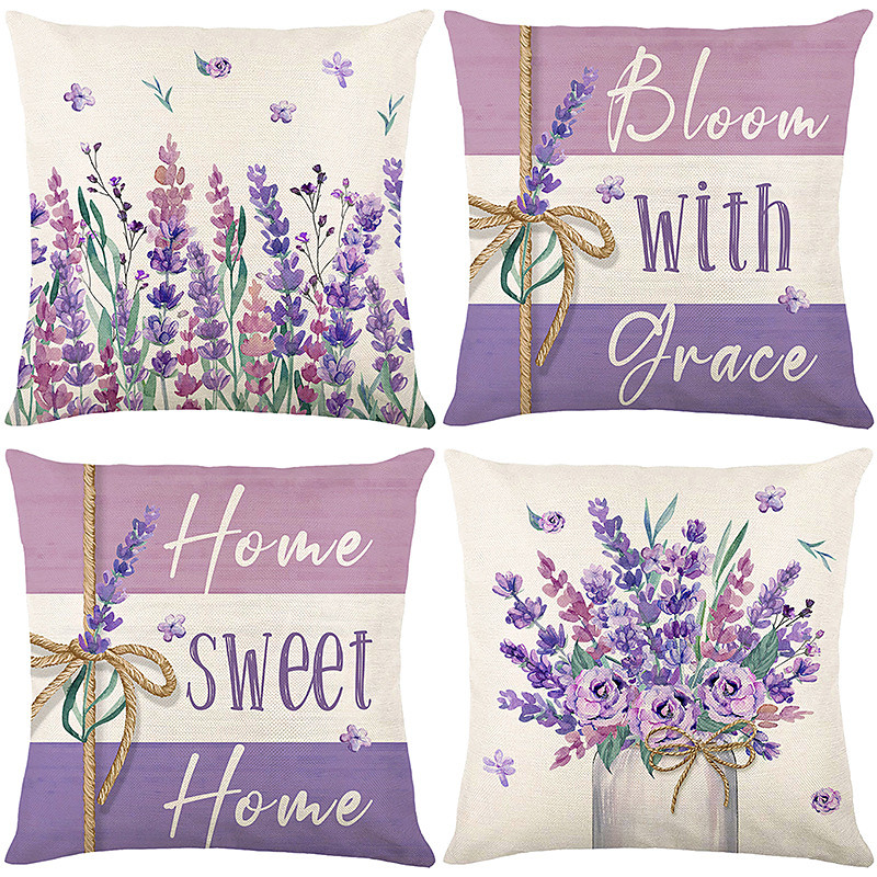 Summer Lavender Decorative Toss Pillows Cover 4PC Soft Square Couch Cushion Case Pillowcase for Bedroom Livingroom Sofa Chair