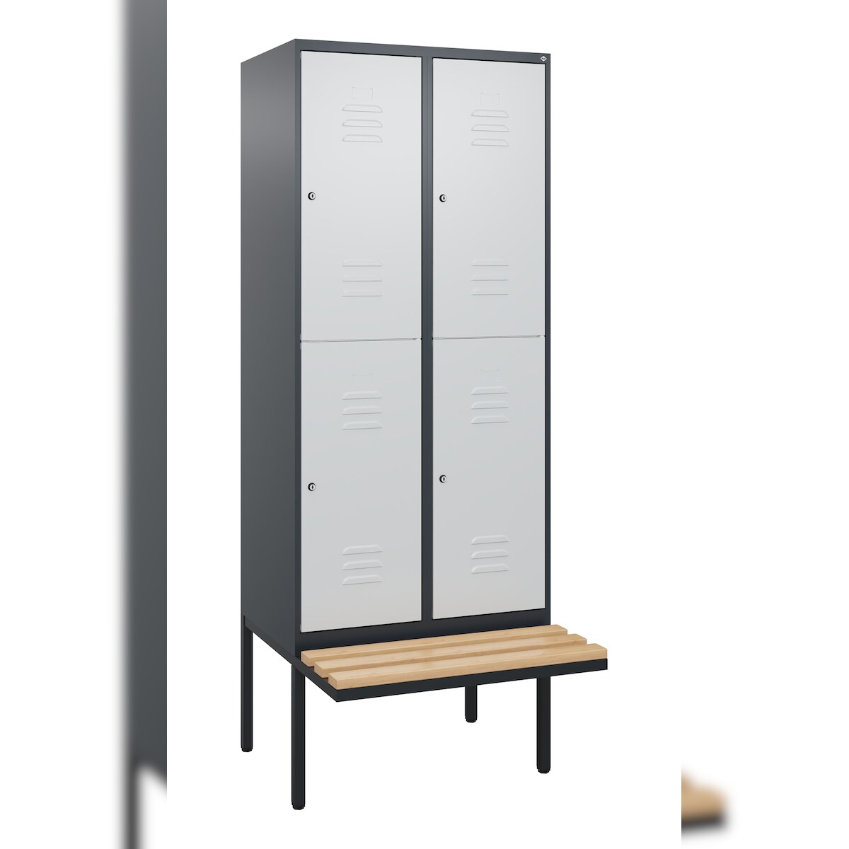 C+P Spind Classic PLUS, Buche schwebende Sitzbank, 4 Abteile, HxBxT 212x80x82cm, Zylinderschloss, Anthrazit/Hellgrau von PROREGAL