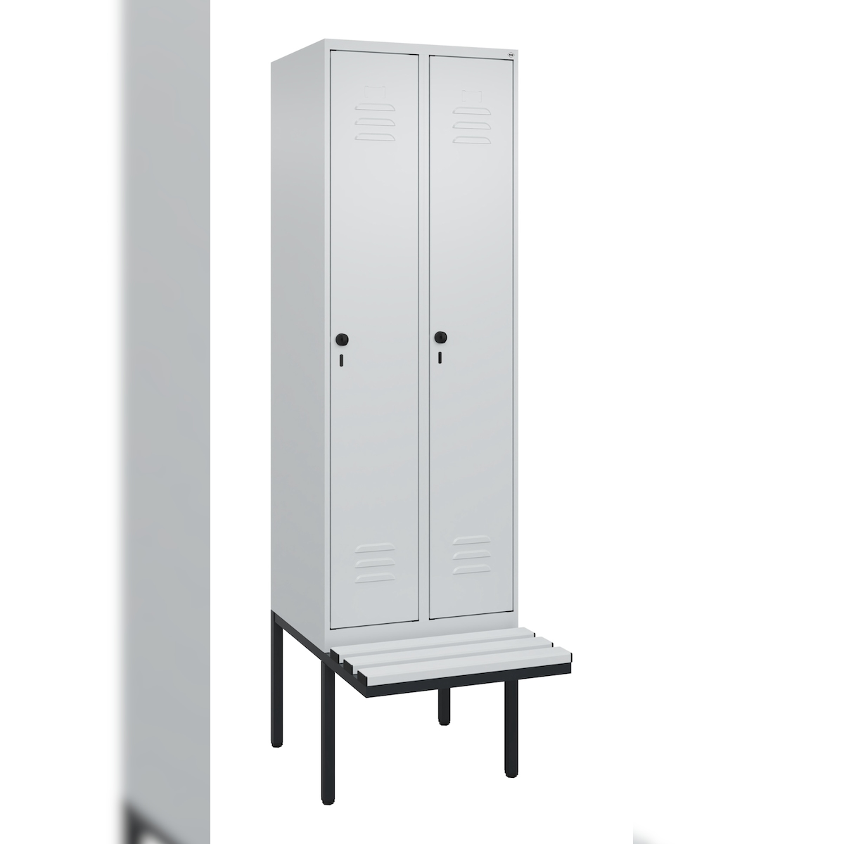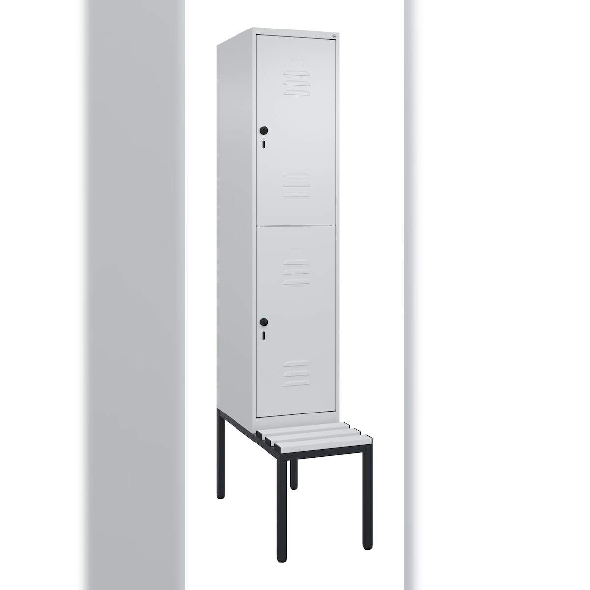 C+P Spind Classic PLUS, Kunststoff untergebaute Sitzbank, 2 Abteile, HxBxT 212x40x82cm, Sicherheitsdrehriegel, Hellgrau/Hellgrau von PROREGAL