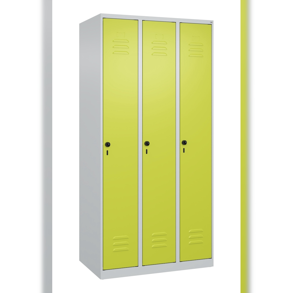 C+P Spind Classic PLUS, 3 Abteile, HxBxT 185x90x50cm, Sicherheitsdrehriegel, Hellgrau/Clowngrün von PROREGAL