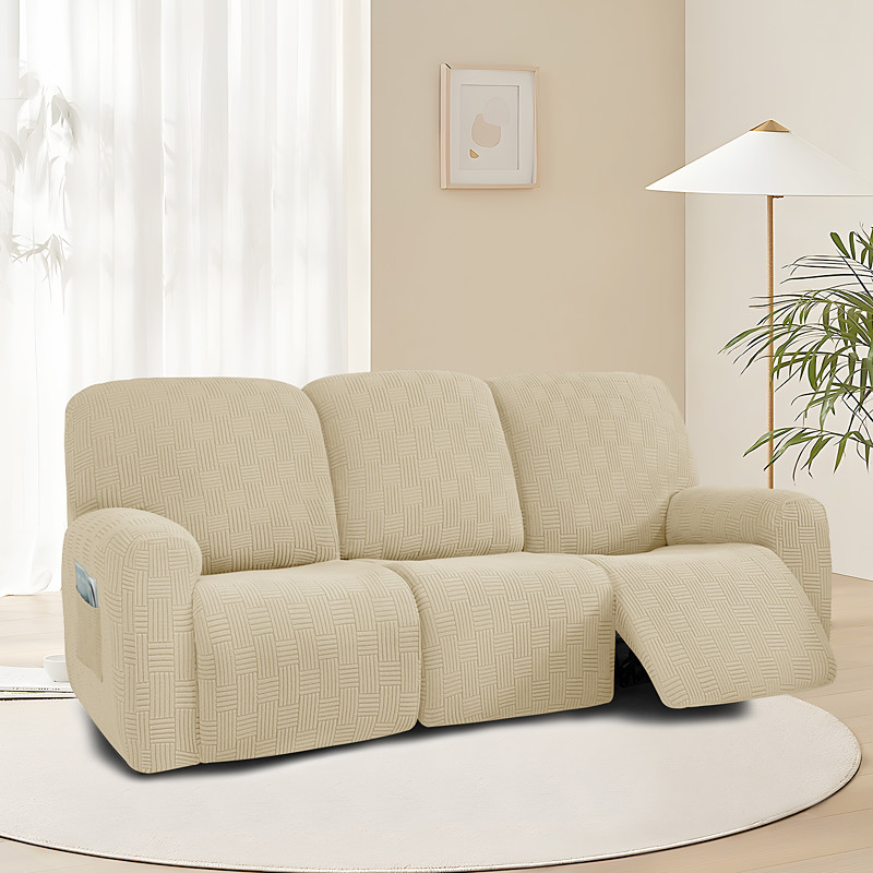 3-Seater Reclining Sofa Cover with 5x5 Grid Stitch Design - Three-Person Lounge Couch Cover with Low Back and Modern Style