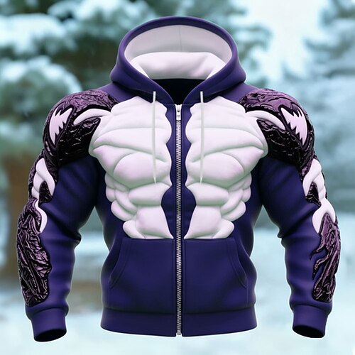 Per uomo Muscolo Illusione ottica Felpa con Cappuccio Giacca di pelle Felpa Vichingo 3D Fantasia Stampa su tutta la superficie Manica Lunga Con cerniera Abbigliamento casual alla moda Vacanza Uscire