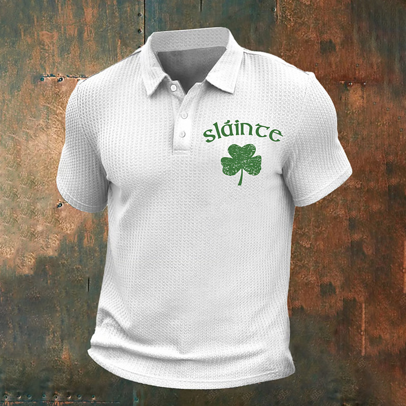 Men's Shamrock Letter Waffle Polo Shirts Short Sleeve Polo Shirts Collared Shirts Casual Party Evening Wear Dailywear Festival Outfit 3D Print Buttons Summer Black White Green