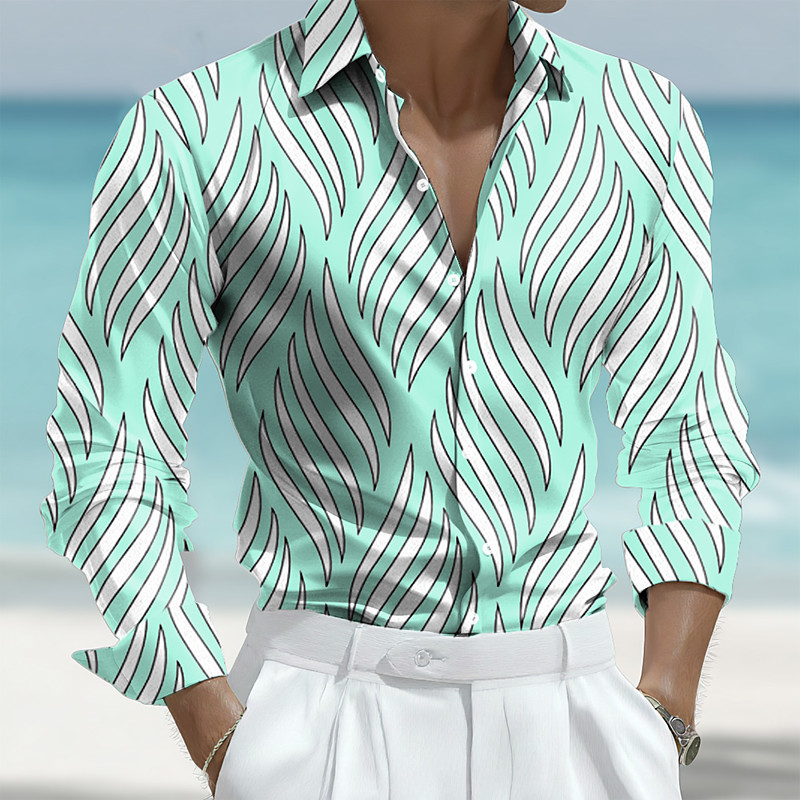 Men's Geometric Pattern Shirt Satin Shirt Dress Shirt Long Sleeve Business Casual Vacation Dailywear Summer Spring Fall Turndown 3D Print Button Up Shirts Blue White Green