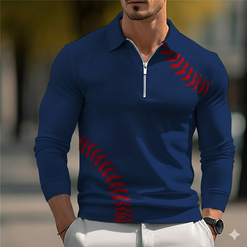Men's Geometric Polo Long Sleeve Turndown Modern Leisure Sports Outdoor Athleisure Casual Daily Zipper 3D Print Spring Fall Winter White Blue Green