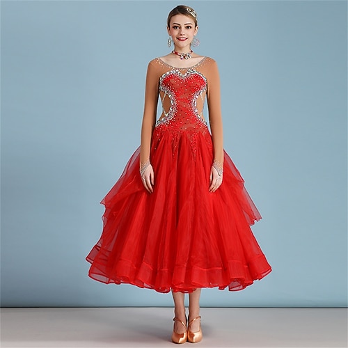 Balli da sala Abito Cristalli / Strass Per donna Prestazioni Addestramento Manica lunga Elastene
