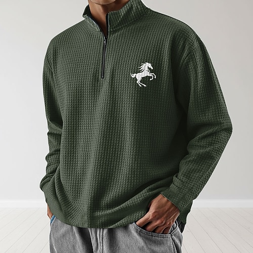 Per uomo Cowboy Nido d'ape Felpa Moda Etnico Classico Casual Collo alla coreana Zip a un quarto Casa All'aperto Ufficio Lavoro Blu Marrone Grigio Con zip Autunno Inverno progettista S M L XL XXL XXXL