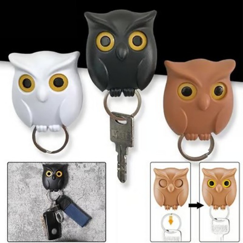3 Pack Owl Key Hooks, Owl Magnetic Wall Hooks, Fridge Magnetic Hook, Key Organizer, No Drill Wall-Mounted Magnetic Adhesive Hook for Easy Storage
