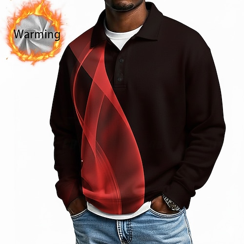 Per uomo Geometrico Linea Polo Camicie termiche Manica Lunga Magliette polo Bavero Casual Athleisure Ferie Abbigliamento quotidiano Stampa 3D Primavera Autunno Inverno Blu Bianco Rosso