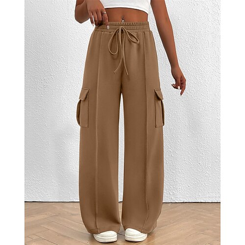 Per donna Pantaloni Cargo Pantaloni Moda Streetwear Lunghezza intera Vita Alta Tinta unita Tasca Confortevole Micro-elastico Sport Outdoor Abbigliamento quotidiano Vinaccia Aalbicocca Nero Bianco