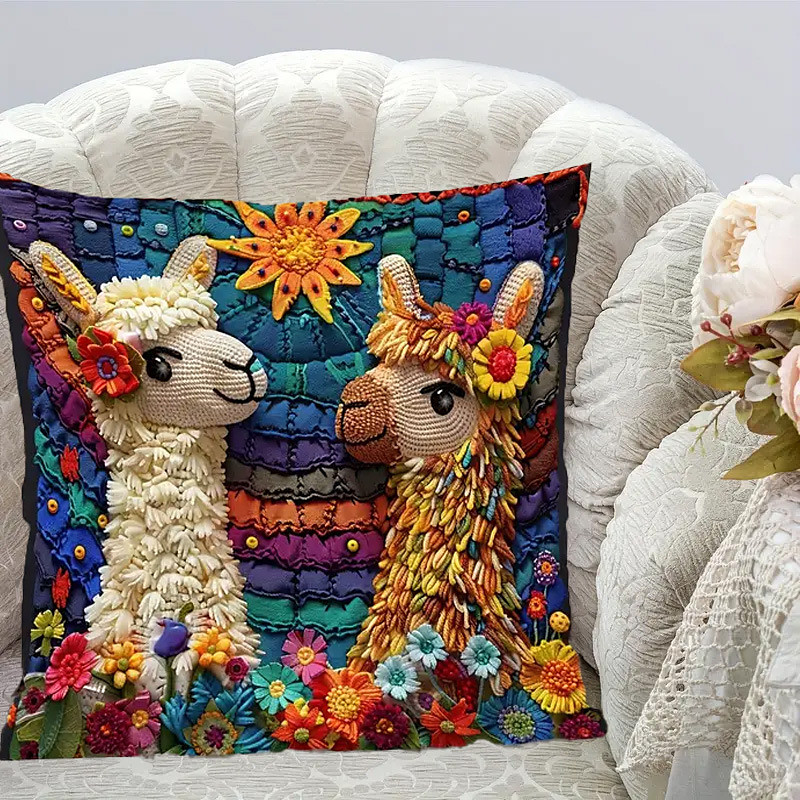 Rainbow Alpaca Pillow Cover 2D Flat Print Soft Short Plush Cushion Case Sofa Living Room Decorative Throw Pillow cover Home Decor 18x18 Inches