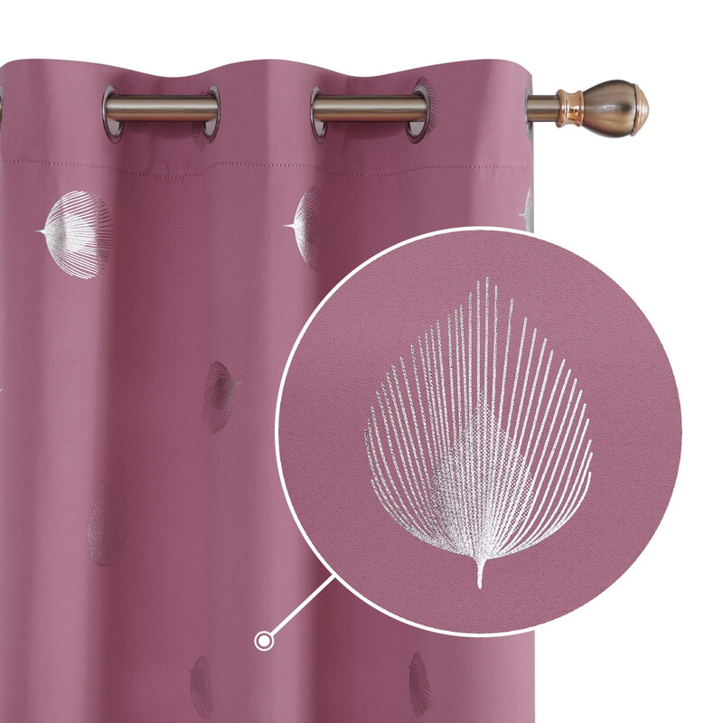 Deconovo Blackout Silver Foil Printed Fan Leaf 6 White Grommet No Tie Curtain, 2Pcs W107*L160 Pink
