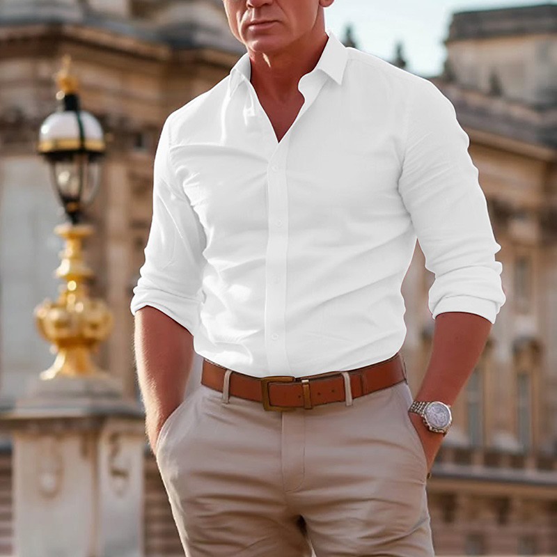 Men's Cotton Linen Shirt Plain Vacation Black White Pink Gray Long Sleeve Lapel Summer Spring Clothing Apparel