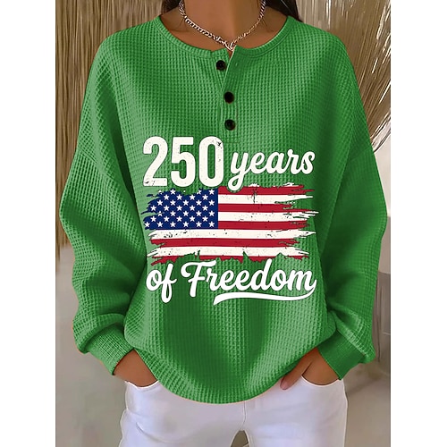 Maglietta Patriottica Giorno dell'Indipendenza Americana 250° Anniversario per Donne Felpe Grafica Lettera Moda Casual Stampa Maniche Lunghe Collo Giro Casual Street Bottoni Blu Nero Rosso Viola