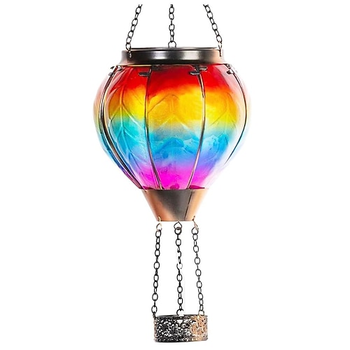 Lanterna solare a forma di mongolfiera, arancione, rossa, impermeabile, da appendere, alimentata a energia solare, con gancio da pastore, per giardino, patio, veranda, albero, gazebo, decorazione per