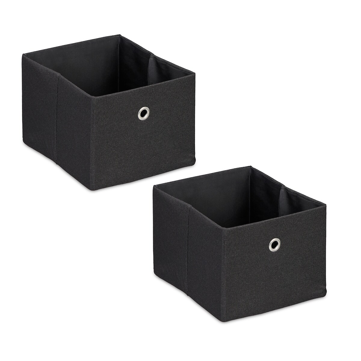 Relaxdays Aufbewahrungsbox, kleine Ordnungsbox aus Stoff, 2er-Set, HBT: 16 x 20,5 x 25 cm, faltbarer Regalkorb, Schwarz