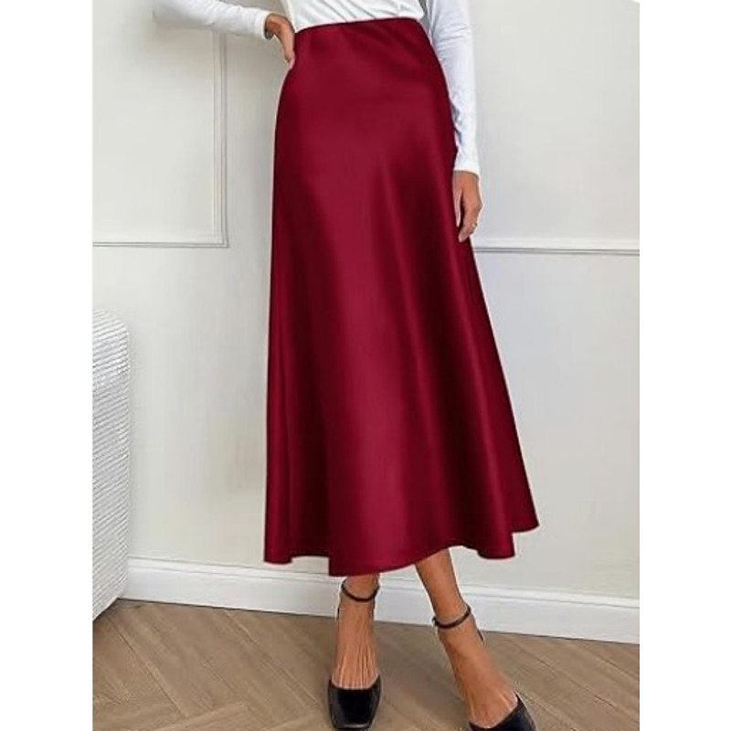 Women's Skirt A Line Elegant Fashion Casual Midi High Waist Skirts Plain Micro-elastic Street Daily Wine Yellow Navy Blue Royal Blue Spring Satin Polyester