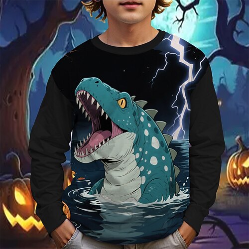 Halloween Jungen 3D Kürbis Dinosaurier T-Shirt Langarm Frühling Herbst Mode Basic Kinder 4-12 Jahre Rundhalsausschnitt Outdoor Lässig Täglich Normale Passform