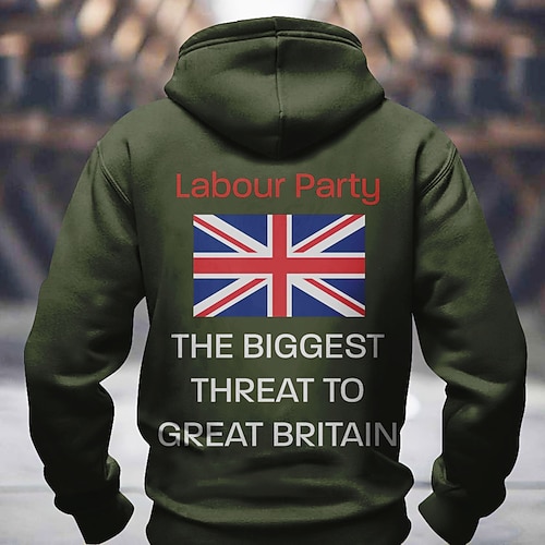 Herren Flagge UK Rückseitendruck Kapuzensweatshirt Pullover Sport Mode Rundhalsausschnitt Outdoor Büro Streetwear Schwarz Rote Kordelzug 3D Herbst Winter Designer