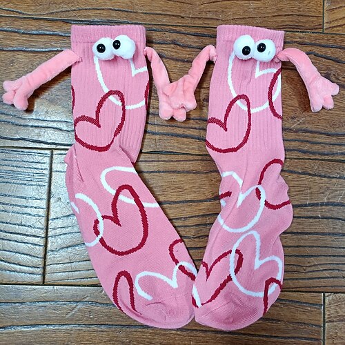 Herzförmige Magnetsocken für Paare zum Valentinstag, atmungsaktive, wadenlange Socken mit Händchenhalten-Motiv, das perfekte Valentinstagsgeschenk, ideal für Paare, kuschelig und stylisch für die