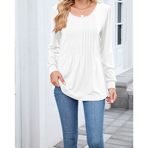 Per donna Blusa con texture Maglietta Semplice Casual Manica Lunga Girocollo Top Regolari Uscire Weekend Nero Bianco Rosa Vino Autunno