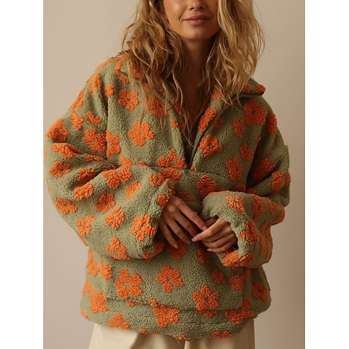 Per donna Felpa Pullover Floreale Casual Manica Lunga Dolcevita Top Regolari Streetwear Abbigliamento Quotidiano Tasca Stampato Nero Giallo Arancione Caffè Autunno Inverno