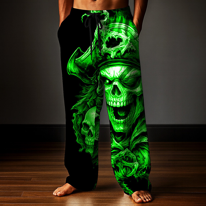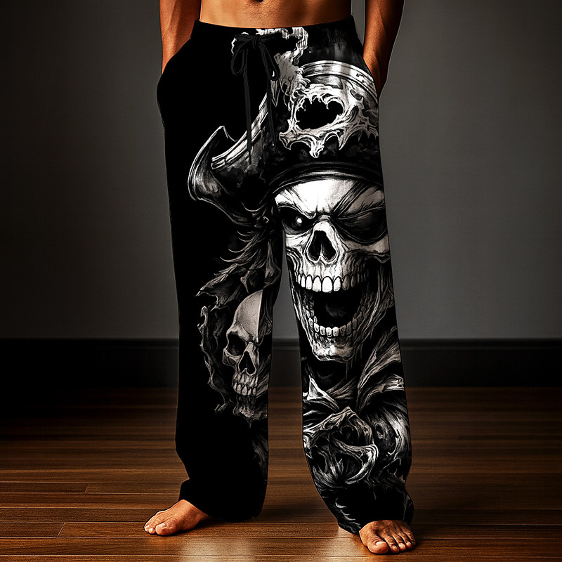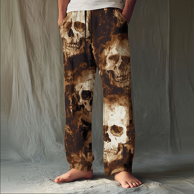Men's Costumes Skulls Trousers Baggy Pants Casual Pants Mid Waist Dark Punk Gothic Style Holiday Elastic Drawstring Waist Linen-Like Pants with Pockets Spring Fall 3D Print Black Brown
