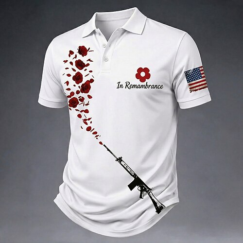 4. Juli 2026 250. Herren Amerikanische US-Flagge Poloshirts Kurzarm Polo-Shirts Hemden mit Kragen Lässig Outdoor Streetwear Athleisure Knöpfe Atmungsaktives Gewebe Sommer Frühling Blau Rote Grau