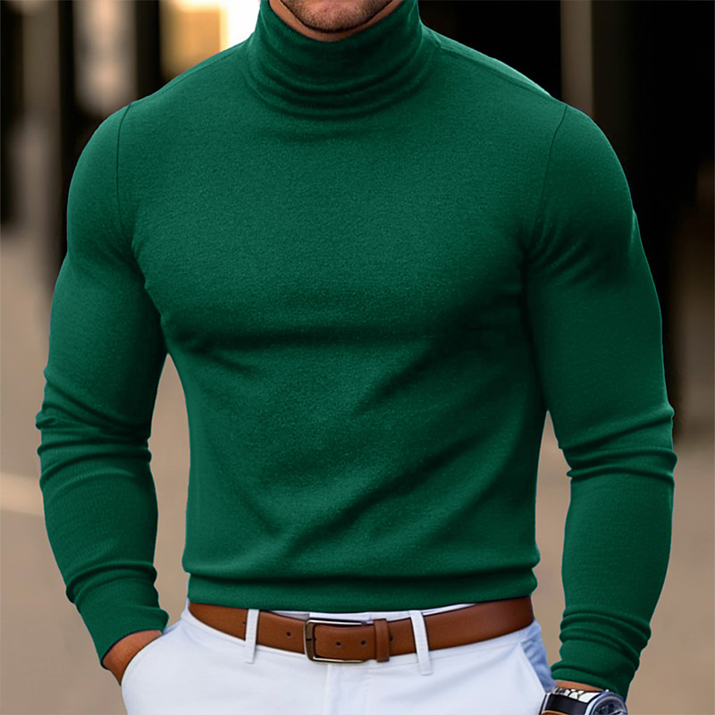 Men's Tee Top Long Sleeve Shirt Mock Turtleneck Long Sleeve Turtleneck Pile Neck Fall Winter Spring Fall Solid Color Daily Casual Street Style High Neck Plain Formal Outdoor Street Light Blue
