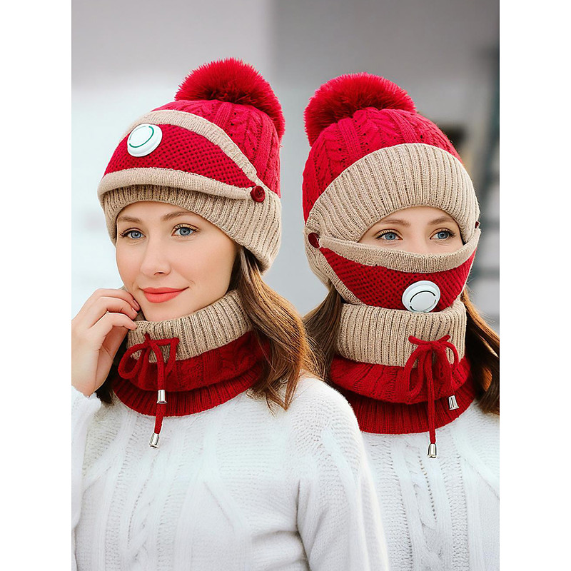 Women's Winter 3-Piece Set – Soft Faux Fur Beanie, Breathable Mask, and Knit Scarf with Fleece Lining, Available in Multiple Colors, Perfect for Cold Weather and Outdoor Activities