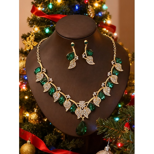 Damen-Set mit roter Kristallkette und Ohrringen, 2-teilig, eleganter vergoldeter Schmuck für Weihnachtsfeiern, Weihnachtsgeschenke Abendoutfits