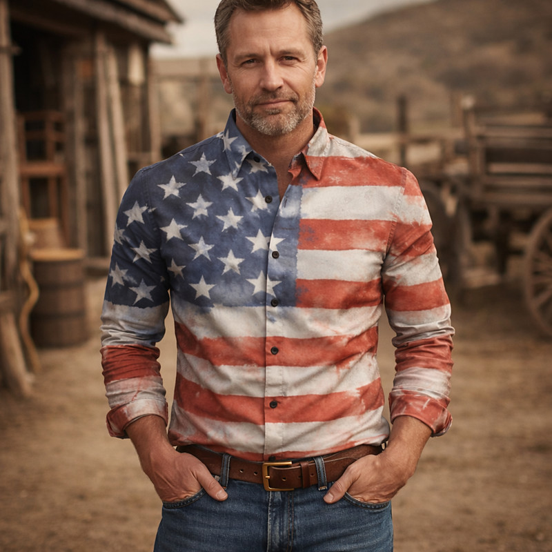 American 250 Retro Vintage 1970s Shirt Aloha Shirt Long Sleeves Hippie Geometic Ethnic Fancy Dress Men's Masquerade 4th of July Party Independence Day Semiquincentennial Adults' Shirt