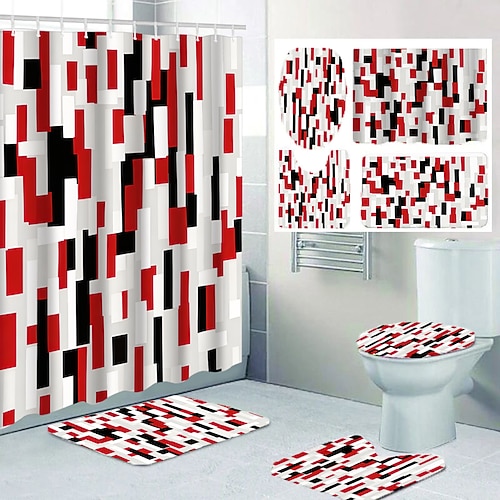 Set da bagno 4 pezzi tenda da doccia in poliestere impermeabile con 12 ganci 180cm180cm (7070) copri tavoletta del WC antiscivolo e tappetino resistente per decorare la casa
