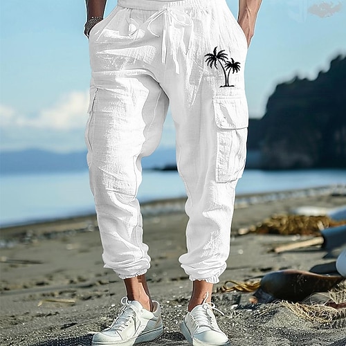 Per uomo Joggers Pantaloni di Lino Pantaloni Pantaloni Estivi Pantaloni da Spiaggia Coulisse Elastico in vita Tasca con Patta Tinta unica Comodità Traspirante Quotidiano All'aperto Spiaggia Vacanza