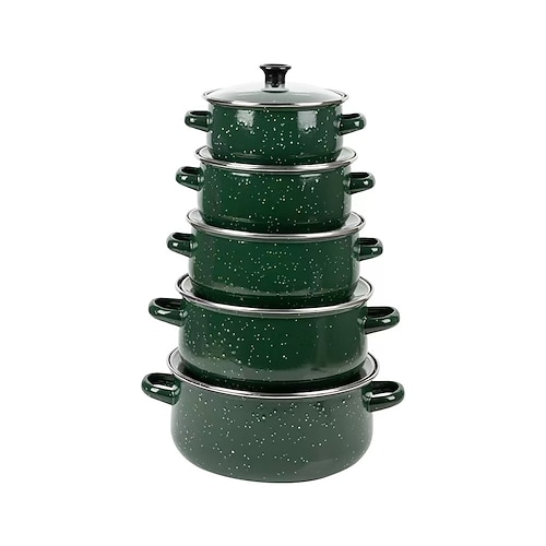 Set di 5 pentole smaltate, set di padelle con coperchio, pentola in ceramica, pentola per stufati a fondo piatto per zuppe e conserve