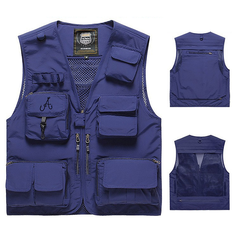 Men's Letter Fishhooks Vest Gilet Fishing Vest Tactical Practical Casual Photography Camping Hiking Hunting Quick Dry Multiple Pockets Fishing Vest with Removable Mesh Back Fall Winter Collarless