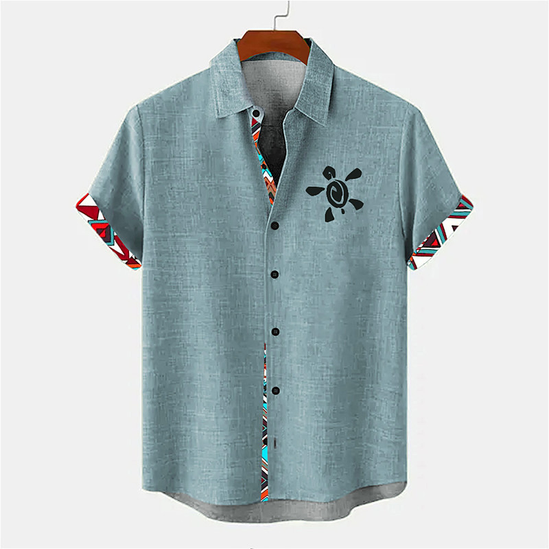 Men's Geometric Linen Shirt Summer Hawaiian Shirt Button Up Shirt Short Sleeve Vintage Retro Vacation Daily Holiday Summer Spring Turndown 3D Print Ethnic Collared Shirts Blue Green Khaki