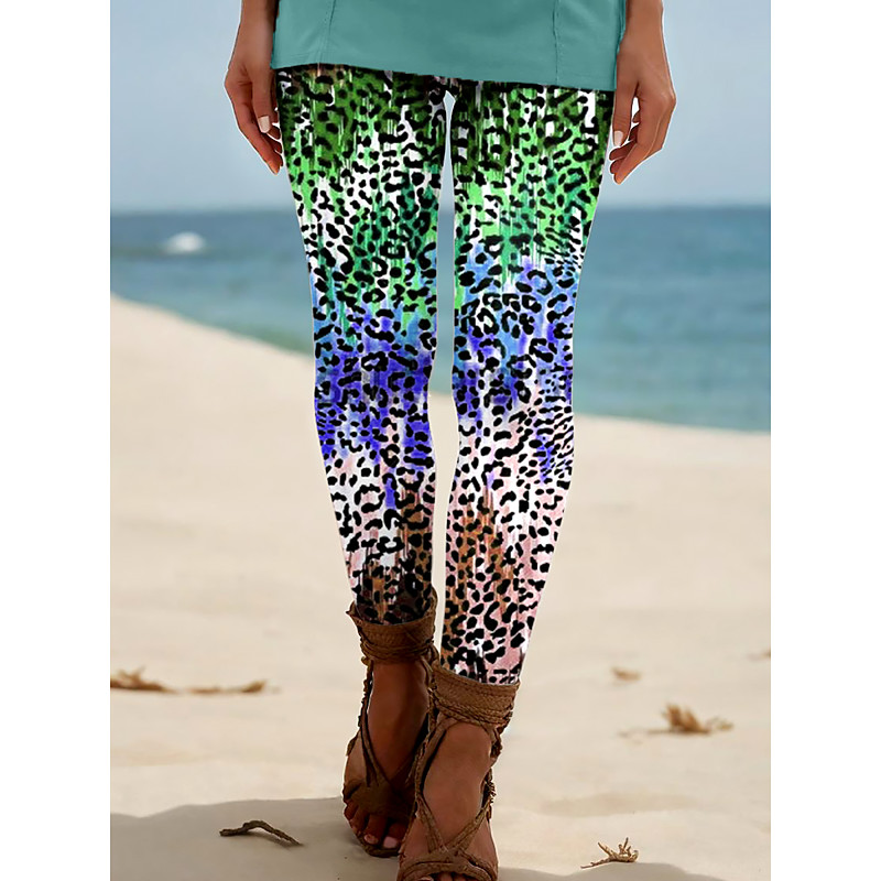 Women's Leggings Vacation Vintage Ethnic Style Ankle-Length High Waist Graphic Leopard Gradient 3D Print Breathability Soft Comfortable Stretchy Outdoor Vacation Home Forest Green Violet Multi Color