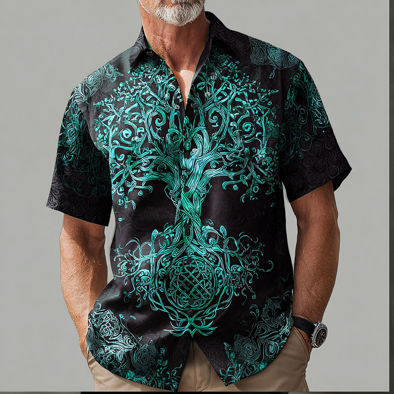 Men's Tree Of Life Shirt Summer Shirt Button Up Shirt Short Sleeve Vintage Retro Dailywear Holiday Summer Spring Turndown 3D Print Collared Shirts Blue Gold Green Gray