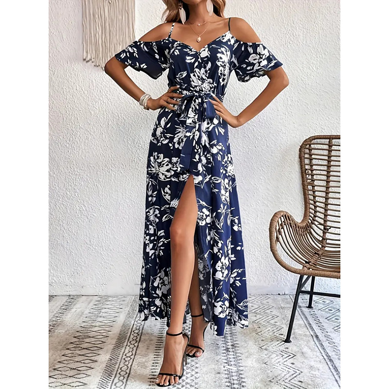 Women's Maxi Dress A Line Dress Vacation Casual Outdoor Going out Standard Fit Floral Short Sleeve Spaghetti Strap Black White Pink Green Summer Spring