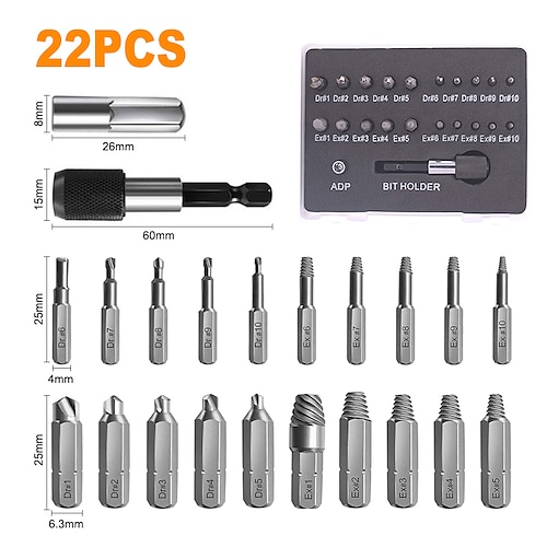 22/33pcs set di punte da trapano per estrattore spogliato vite rotta bullone di rimozione della vite prigioniera denti antiscivolo danneggiati demolire strumenti rotti spogliati