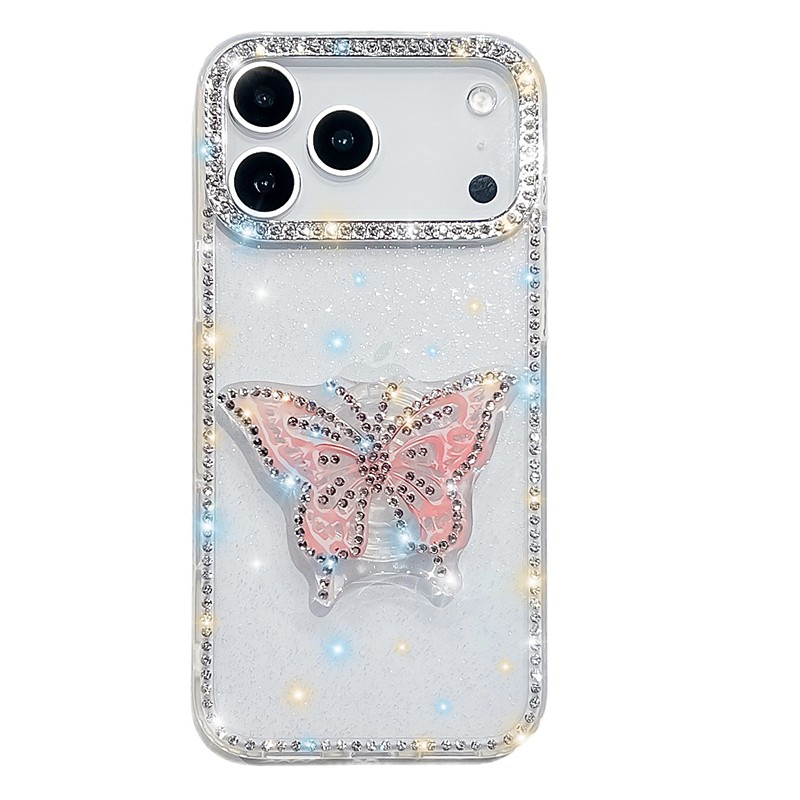 Phone Case For iPhone 17 Pro Max 17 Air Back Cover with Stand Holder Transparent Ultra Thin Butterfly ABSPC